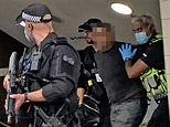 The man who was arrested by police after a horrific machete attack is led away in handcuffs from Bond Street station while flanked by armed police officers last night