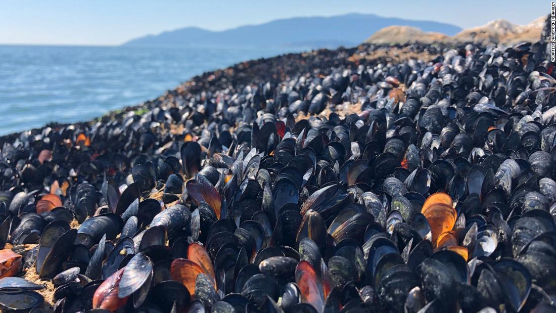 Mussels attach themselves to rocks and other surfaces and are used to being exposed to the air and sunlight during low tide, Harley said, but they generally can’t survive temperatures over 100 degrees for very long.