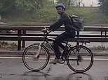 Deliveroo cyclist is caught riding along the outside lane of a MOTORWAY after taking ‘wrong road’ to deliver takeaway food