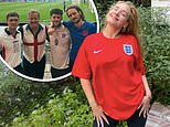 Support: Katie Price, 43, motivated the team insisting that football’s coming home by sporting an England T-shirt