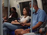 London Mayor Sadiq Khan has ordered face masks to remain compulsory on the Tube, buses and taxis – even though they are not required on trains from ‘Freedom Day’. Pictured: People not wearing masks on the Jubilee line this afternoon