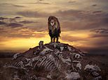 Lion king of the hill: British photographer captures beast towering on pile of bones in South Africa