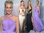 Sharon Stone, 63, defies her years in a feathered lilac gown as she joins Stella Maxwell and Bella Thorne in leading the glamour at the 27th amfAR Gala during Cannes Film Festival