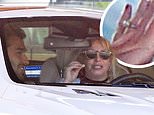 Jovial: Britney and her man Sam appeared to be in high spirits as they waited in their vehicle