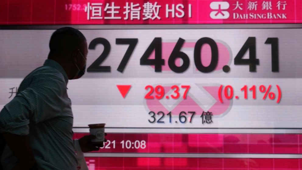 In Asia, Tokyo’s Nikkei 225 slipped 1.0% to finish at 27,388.16. South Korea’s Kospi shed 0.4% to 3,232.70. Australia’s S&P/ASX 200 declined 0.5% to 7,252.20. Hong Kong’s Hang Seng lost 0.8% to 27,259.25, while the Shanghai Composite inched down nearly 0.1% to 3,536.79.