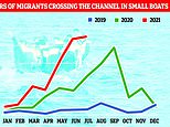 The number of migrants crossing the Channel between 2019-21 has been increasing year-on-year. The graph above shows how many have crossed each month. The red line for 2021 soars above the lines for previous years, showing the monthly total is now at its highest ever