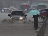 At least 12 people drown as underground rail network in Chinese city fills with water after 22 INCHES of rain fell in ONE hour – with terrifying videos showing passengers trapped neck-deep in carriages