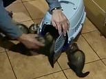 • Footage showed Mr Shaw desperately trying to put the ferrets in a cat carrier