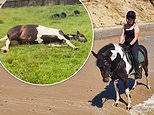 Six-year-old horse Marge flops completely to the ground for a bit of shut-eye whenever the sun comes out in Lowestoft, Suffolk