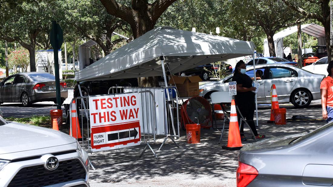 People wait at a testing and vaccination site in Barnett Park, Florida. One in five of all cases in the US are occurring in the state, White House officials say.