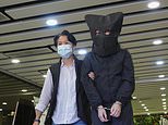 Since the national security law was implemented, more than 100 pro-democracy supporters have been arrested and many others have fled abroad. Pictured: Police carry potential evidence while escorting a hooded suspect on Thursday