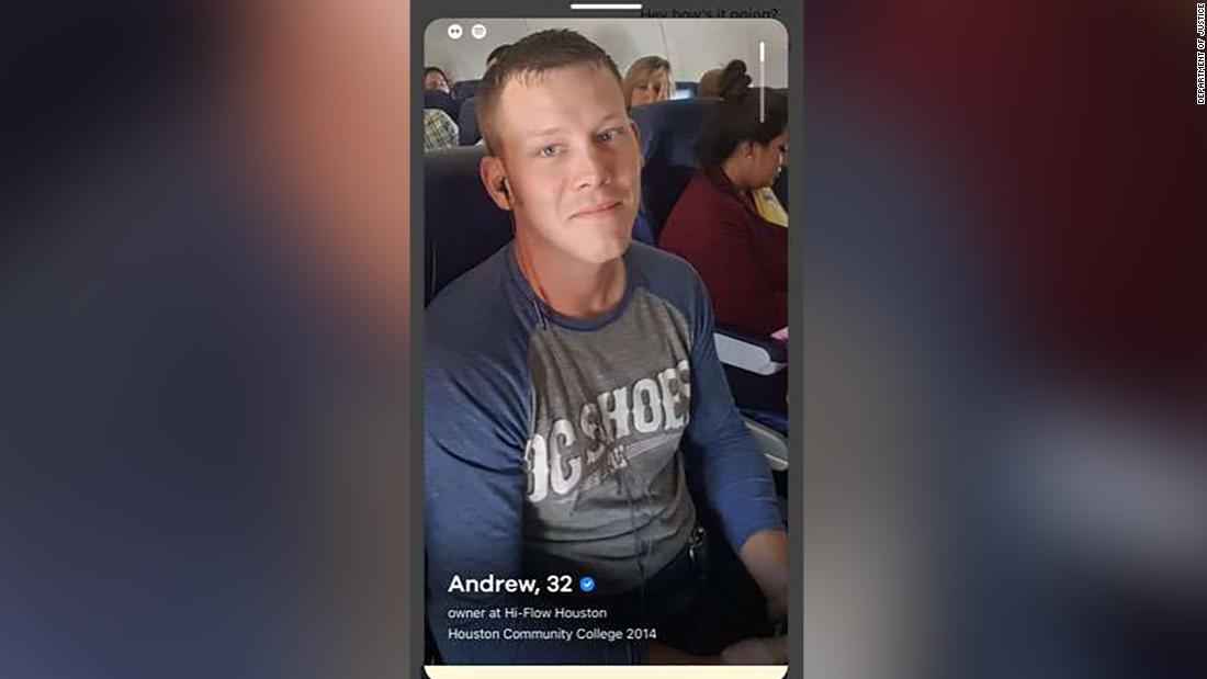 Prosecutors say Andrew Taake of Texas used the dating app Bumble while in Washington on January 6. The match asked if he was near the Capitol and he said he was there “from the very beginning.” He sent several selfies and claimed that he spent 30 minutes in the building.