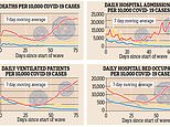 ‘The length of stay seems to be coming down. The average length of stay is down from ten days to around seven or eight. Those two days might not sound like much but it frees up 9,000 bed days and that’s a huge number.’ While the outlook is very different from previous waves, medical experts warn hospitals could yet be overwhelmed – with a ‘horrendously busy’ few months feared.