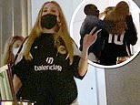 The Hello singer kept things casual for the flirty outing, showing off her slimmed-down frame in a black Balenciaga football top, teaming the luxury piece with ripped jeans and a pair of chic heels.