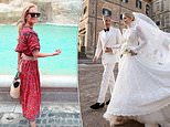 Princess Diana‘s niece, 30, who wed retail millionaire Michael Lewis, 62, at a 17th century Italian castle on Saturday, shared a photo of Victoria, 55, at the Trevi Fountain with the caption: ‘Mummy in Rome for our wedding’.