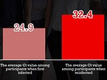 The Office for National Statistics studied 195 Brits and found their average Ct value when they caught Covid for the first time was 24.9. The Ct value shows how much of the virus was present in the nose or throat sample, with a lower number equating to a higher amount of the virus. When participants caught Covid again, they had an average Ct value of 32.4, meaning there was less virus present in their sample