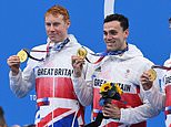 Tom Dean (left) became the first British man in 113 years to win two swimming golds at the same Olympics as Team GB ‘s 4x200metres freestyle relay quartet sensationally stormed to victory in the pool on Wednesday