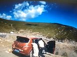The family were enjoying a day out at the scenic Duku Highway in Xinjiang. They had pulled up at a well-known beauty spot and parked their car overlooking a valley below.
