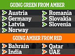 Meanwhile, the status of India, Bahrain, Qatar and the United Arab Emirates will switch from red to amber, meaning arrivals from those countries will no longer have to spend 11 nights at pricey quarantine hotels.