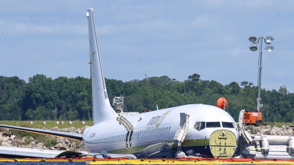 The Miami Air jet hydroplaned off the runway and wound up in shallow water of the St. Johns River. None of the 143 passengers and crew were seriously hurt, but several pets in the cargo hold died.