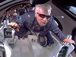 Sir Richard Branson floats in zero gravity on board Virgin Galactic’s passenger rocket plane VSS Unity after reaching the edge of space above Spaceport America