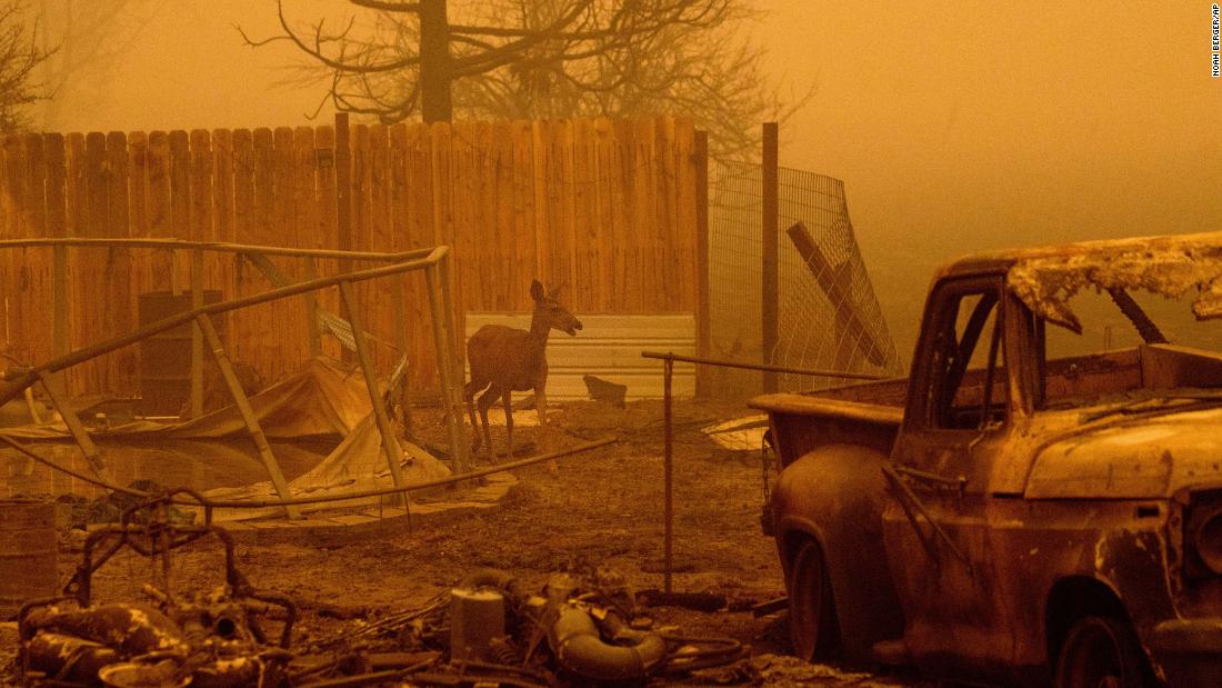 Operations Chief Jay Walter passes the historic Sierra Lodge as the Dixie Fire burns through Greenville, California, on Wednesday, August 4. The fire leveled multiple historic buildings and dozens of homes in central Greenville.