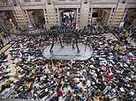 Members of the public stage a ‘die-in’ protest at the Kelvingrove Art Gallery and Museum in Glasgow, Scotland
