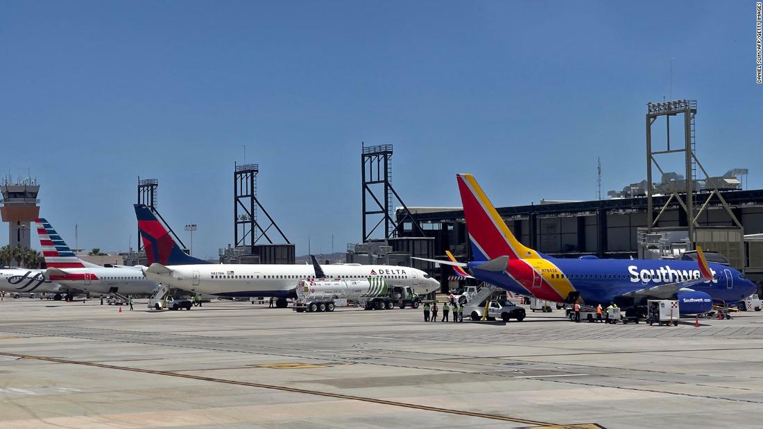 Top image: Southwest and Delta aircrafts are seen at the San Jose del Cabo International Airport in Baja California state, Mexico, on April 29, 2021. (Daniel Slim/AFP/Getty Images)