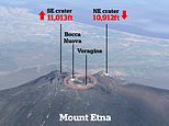 Mount Etna has grown in height to a record 11,013ft after six months of activity, according to Italy’s volcano monitoring agency. Experts said the southeast and youngest crater of Europe’s most active volcano is now much higher than its ‘older brother’, the northeast crater (pictured)