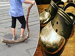Wheely bad idea! Snake printed cowboy boots with roller skate wheels are unlikely to catch on any time soon, but at least one person likes them