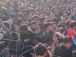Hundreds of Afghans desperately trying to flee the Taliban are pictured outside Kabul airport