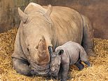 What a relief! Mother white rhino gives birth to rare baby at Whipsnade Zoo after mammoth 487-day pregnancy