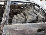 Burned-out rocket launchers used in latest ISIS-K attack on Kabul airport lie inside car that burst into flames after the assault following US drone strike which ‘killed ten family members, including seven children’