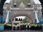 Extinction Rebellion mock Met Police with Benny Hill-style video of them evading officers as they blockade Tower Bridge but officers hit back by arresting 11
