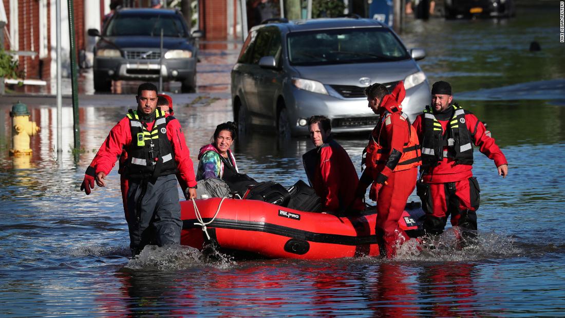 First responders rescued people stranded in flooded subway stations and motorists from roadways inundated with water after unprecedented rainfall