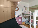 Anna Oliver, 36, who lives in Liverpool, has transformed her daughter’s bedroom into a garden-theme space, pictured, complete with bunkbeds and a pink and green colour scheme