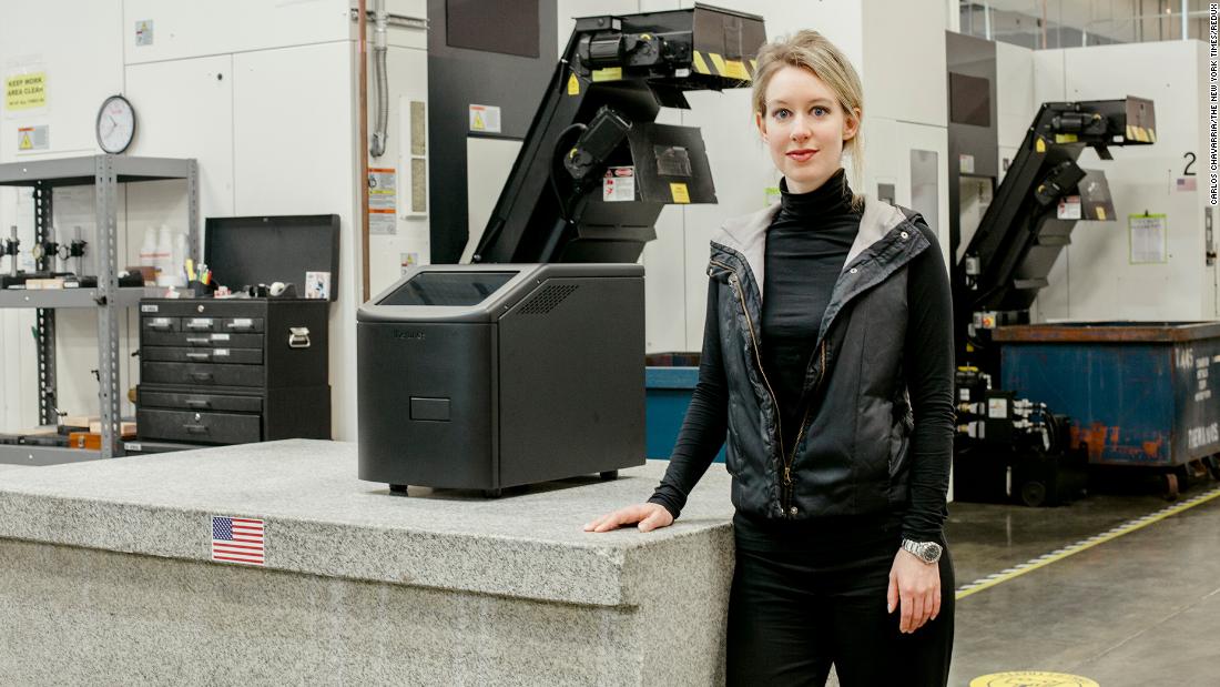 Holmes with a Theranos blood testing machine at the company’s facility in Newark, California, in December 2015.