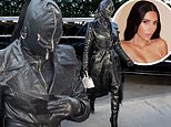 Kim Kardashian shocks in fetish mask with zips and head to toe leather look as she arrives in NYC