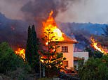 Flames leap from the roof of a house in the village of Los Campitos on the island of La Palma after it was destroyed by lava