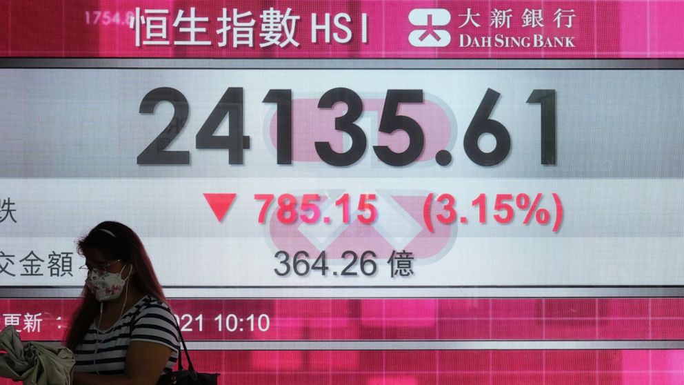 The Hang Seng, Hong Kong’s main index, dropped 3.3% for its biggest loss since July. Many other markets in Asia were closed for holidays. European markets fell about 2%.