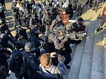 Footage taken from the chaotic scene shows a sea of officers in tactical gear grabbing protesters one by one, dragging them away from the steps of the war memorial.