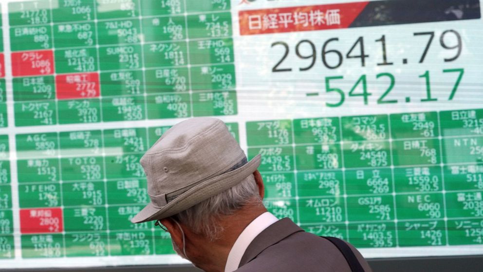 In Asian trading, Tokyo’s Nikkei 225 sank 2.1% to 29,544.29 and the Kospi in Seoul dropped 1.2% to 3,060.27. The Shanghai Composite index shed 1.8% to 3,536.29. In Sydney, the S&P/ASX 200 gave up 1.1% to 7,196.70.
