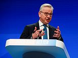 ‘Bright lights, enthusiastic young people. It reminds me of my last night out on the town!’: Michael Gove bursts on to Tory conference stage to the sound of Abba’s Dancing Queen – before immediately making gag about THAT night out in an Aberdeen club