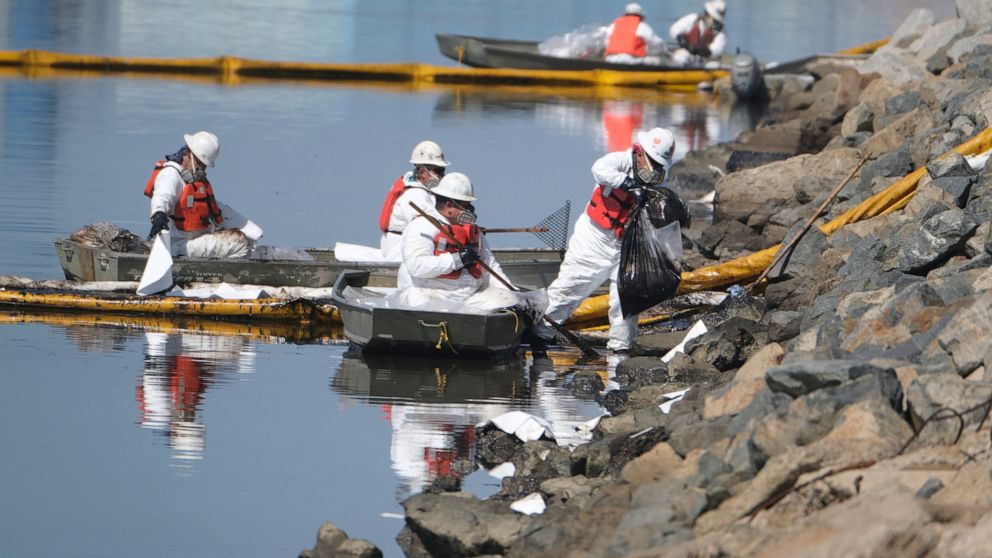 The spill comes three decades after a massive oil leak hit the same stretch of Orange County coast. On Feb. 7, 1990, the oil tanker American Trader ran over its anchor off Huntington Beach, spilling nearly 417,000 gallons (1.6 million liters) of crude. Fish and about 3,400 birds were killed.