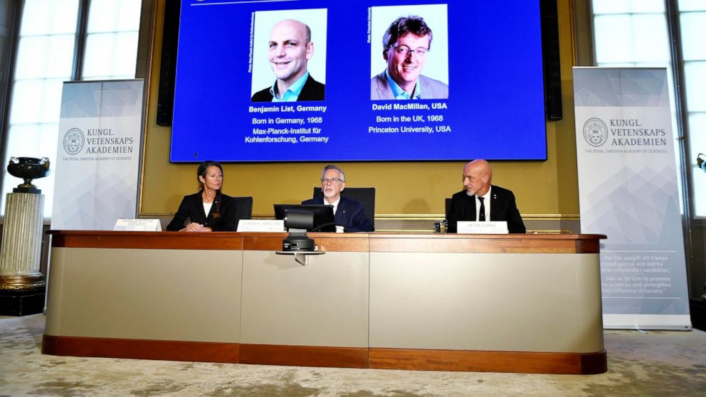 The chemistry prize focused on the making of molecules. That requires linking atoms together in specific arrangements, an often difficult and slow task. Until the beginning of the millennium, chemists had only two methods — or catalysts — to speed up the process, using either complicated enzymes or metal catalysts.