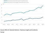 The latest ONS survey showed that 10 per cent of businesses reported increasing the price of goods and services in early September – up from 8 per cent in mid-August and 4 per cent in late December.