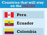 The seven destinations that will stay on the ‘red list’ will be: Colombia, Dominican Republic, Ecuador, Haiti, Panama, Peru and Venezuela.