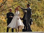 They were seen posing for pictures on the deck before moving down to a scenic, tree-lined driveway, where the pair walked as a couple, danced and kissed.