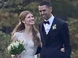 The happy couple could be seen posing for wedding photos following their Saturday afternoon ceremony in North Salem
