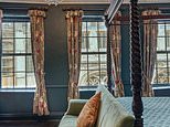 Carlton’s room had a four-poster bed, with sash windows filled with killer views, and featured shabby-chic furniture on sloping dark-wood floors